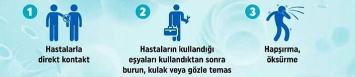 - Eller yıkanmadan yüze dokunulmamalı özellikle kirli eller ile göz ve burun temas etmemelidir.