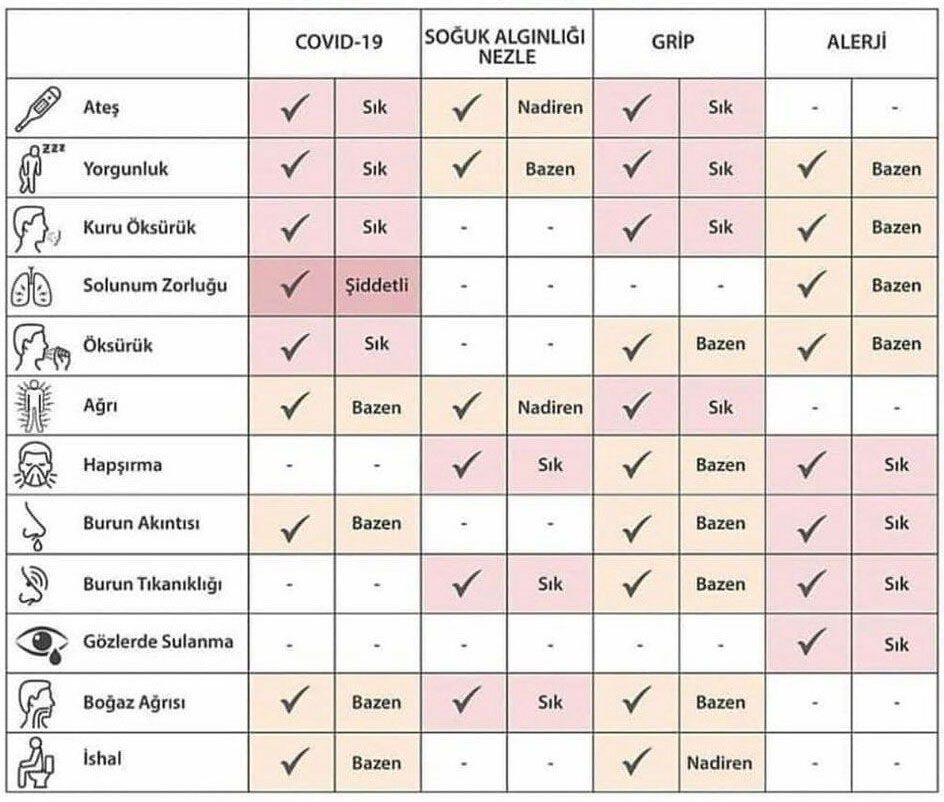 COVİD-19, Nezle, Grip, Alerji Semptomları